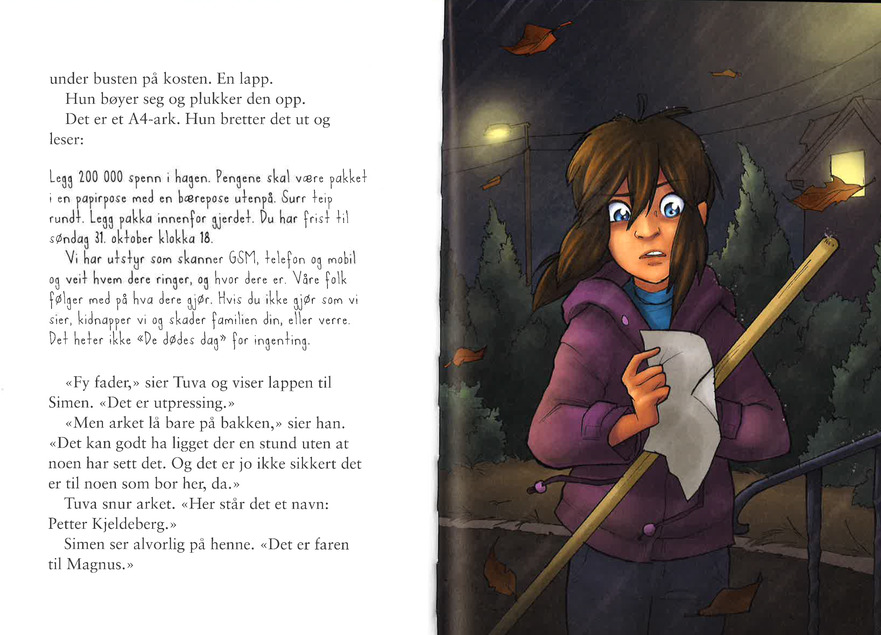 Tuva og Simen skal feire Halloween. Utenfor huset finner de et trusselbrev. Simen avfeier det hele som tull, men Tuva er urolig. Senere på kvelden dukker det plutselig opp noen ukjente menn på jakt etter noe langt mer verdifullt enn godteri. Nok en gang er Tuva og Simen midt oppi et livsfarlig eventyr.